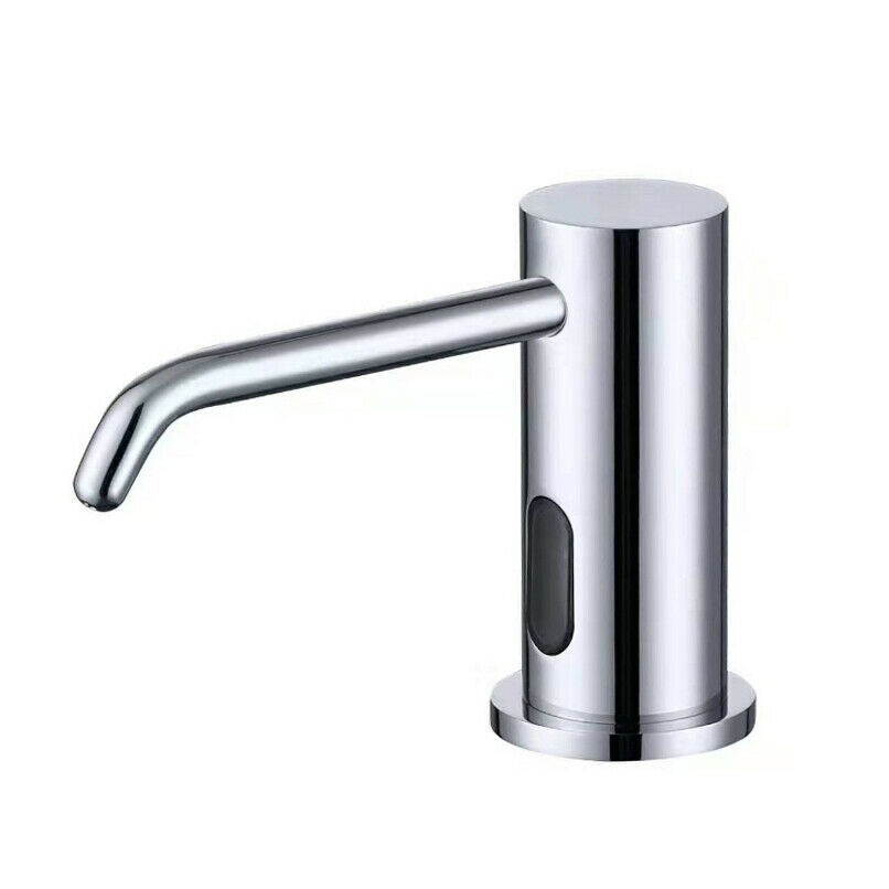 Elegante chroom afgewerkte zeep sensor dispenser.
