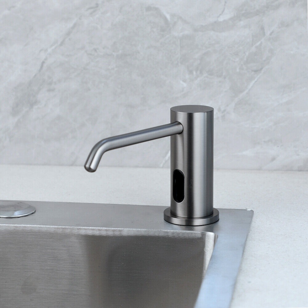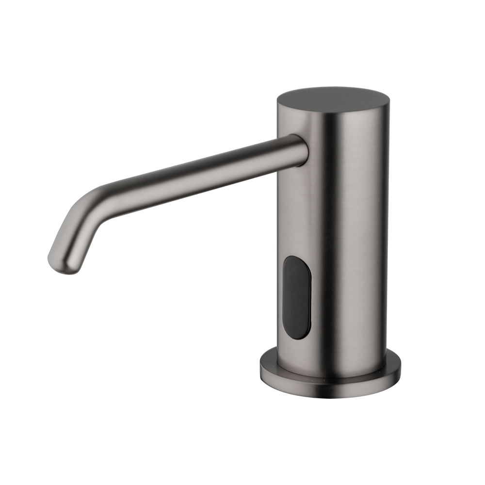 Elegante Gun metal afgewerkte zeep sensor dispenser.