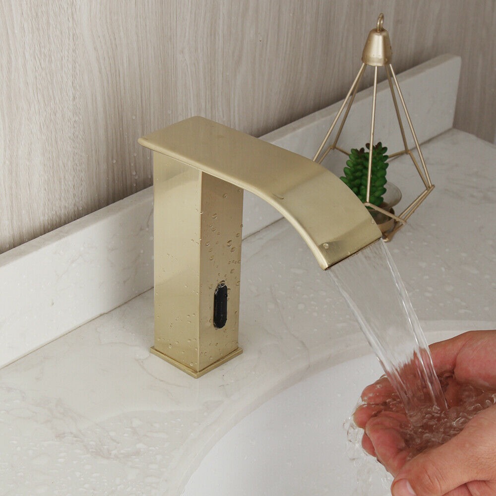 Dit is een koud water model sensorkraan met een elegante geborsteld gouden afwerking.