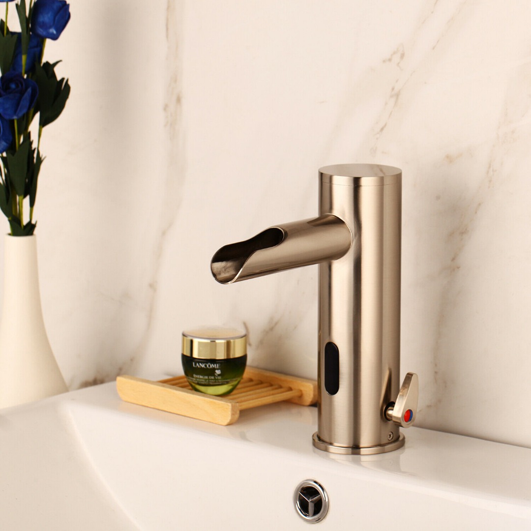 Nikkel geborstelde sensorkraan met een half open uitloop voor een sensationele werking.