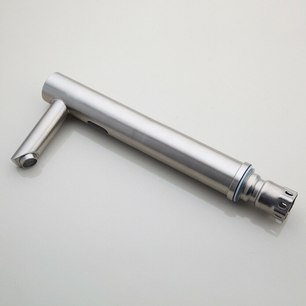 Mooie hoge sensorkraan met een geborosteld nikkel uiterlijk.