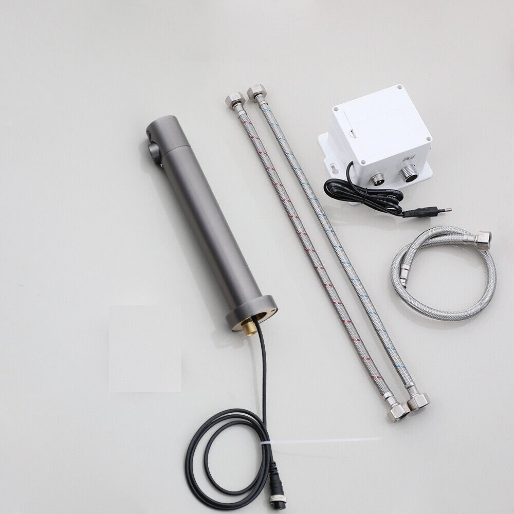 De Baltic gun metal sensorkraan wordt geleverd met geïntegreerde muurplaat.