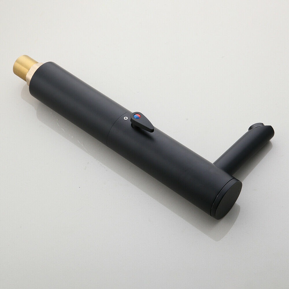 Scuro zwart sensorkraan met warmte regelaar op de kraan.