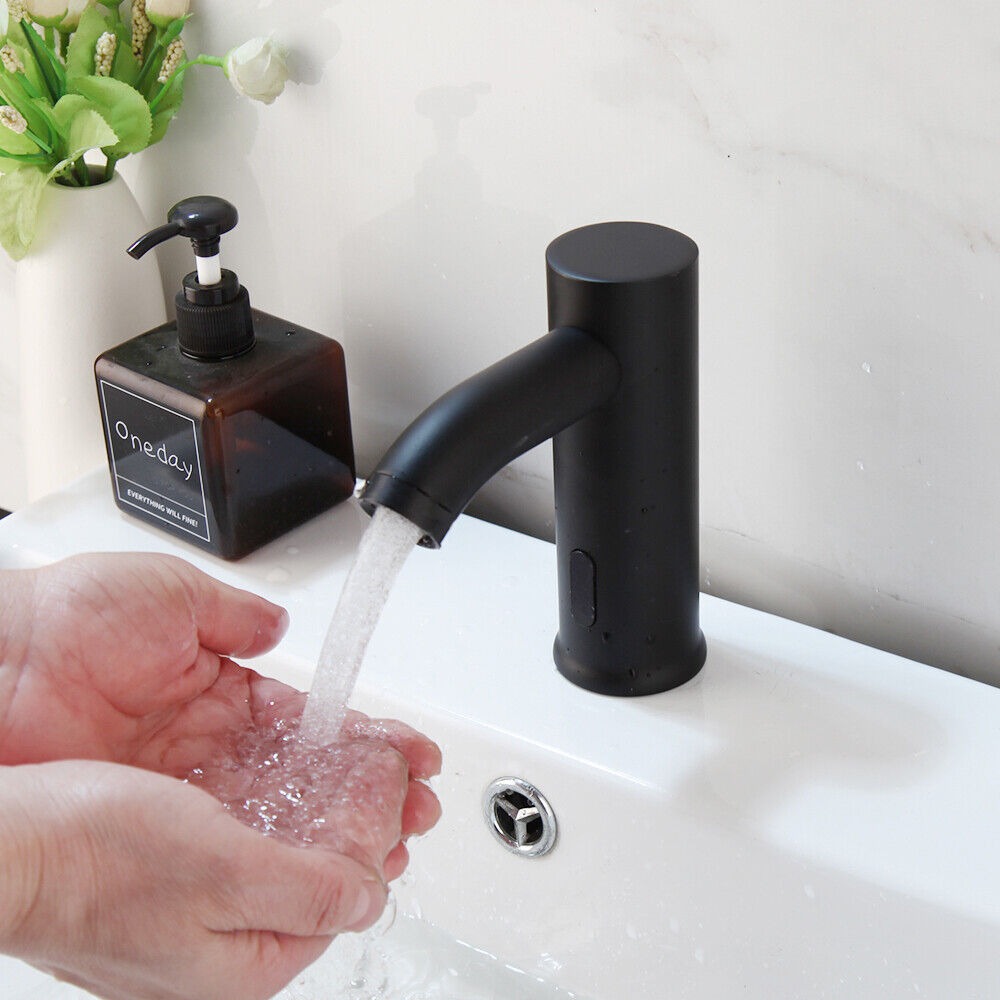 De zwarte sensorkraan heeft de warmte regelaar welke u weg werkt onder uw werkblad.