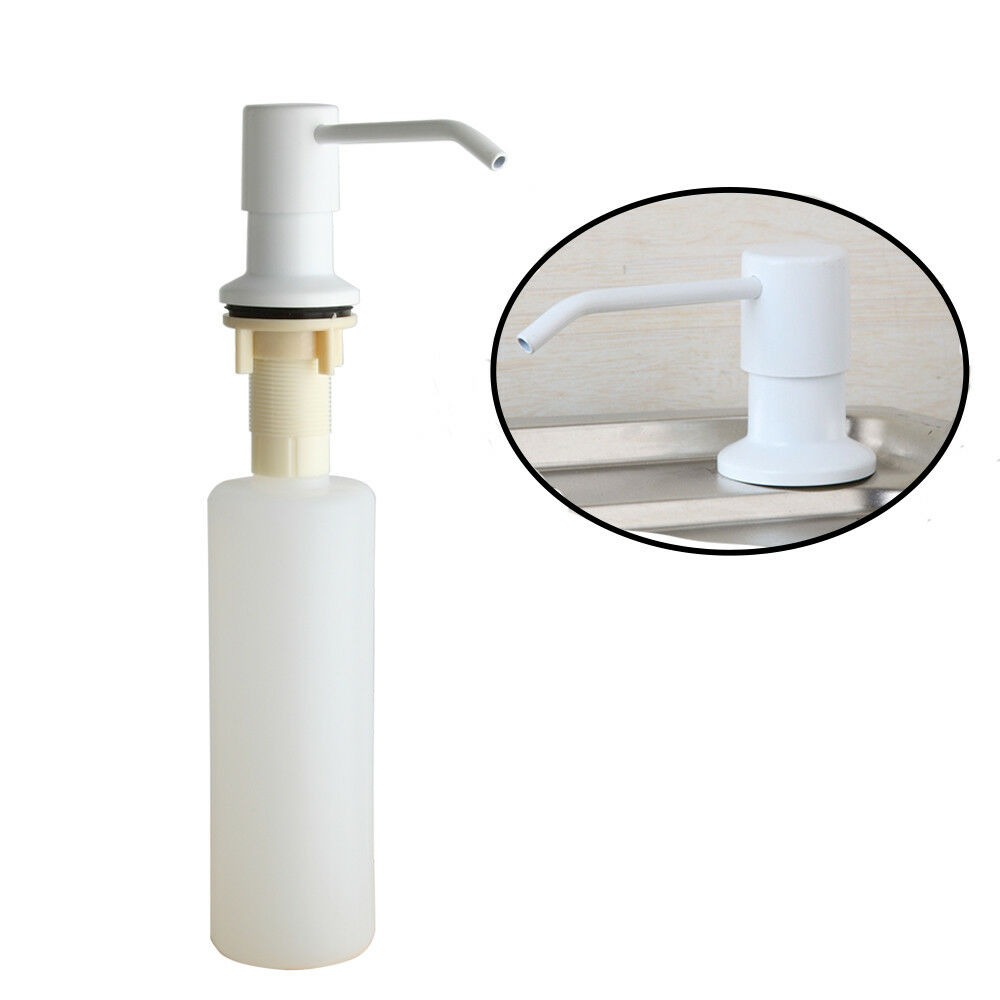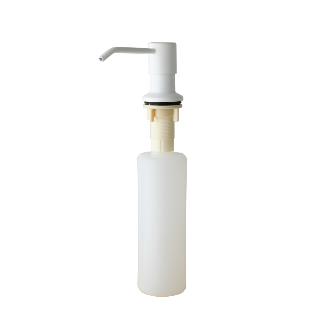 Mooie witte inbouw zeep dispenser, het is een handmatige uitvoering.