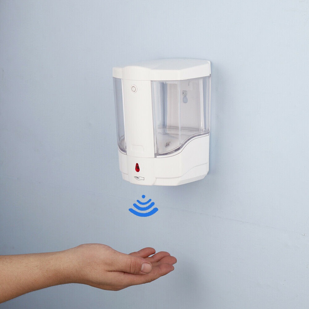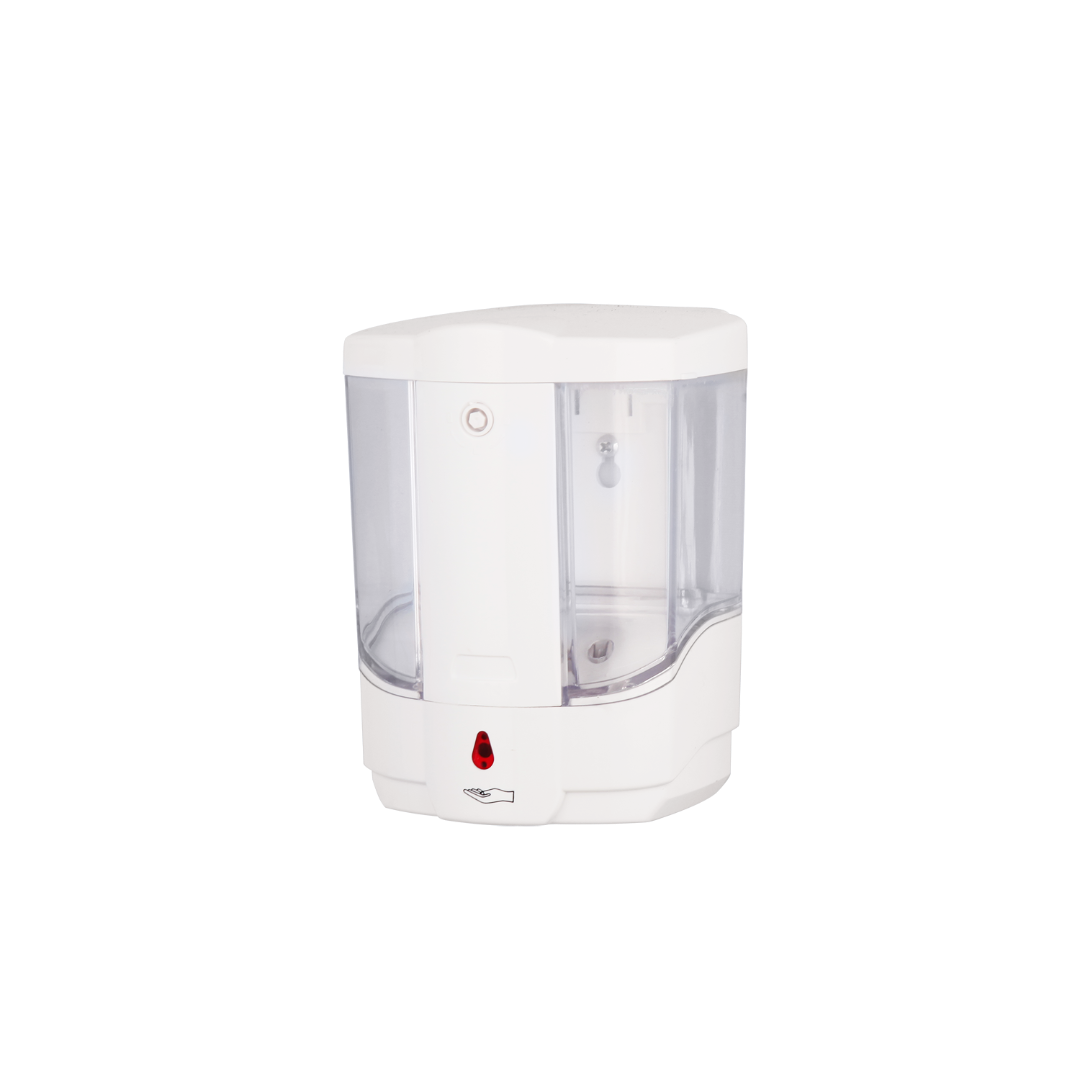 De witte zeepdispenser is uitgerust met ingebouwde infrarood sensor.