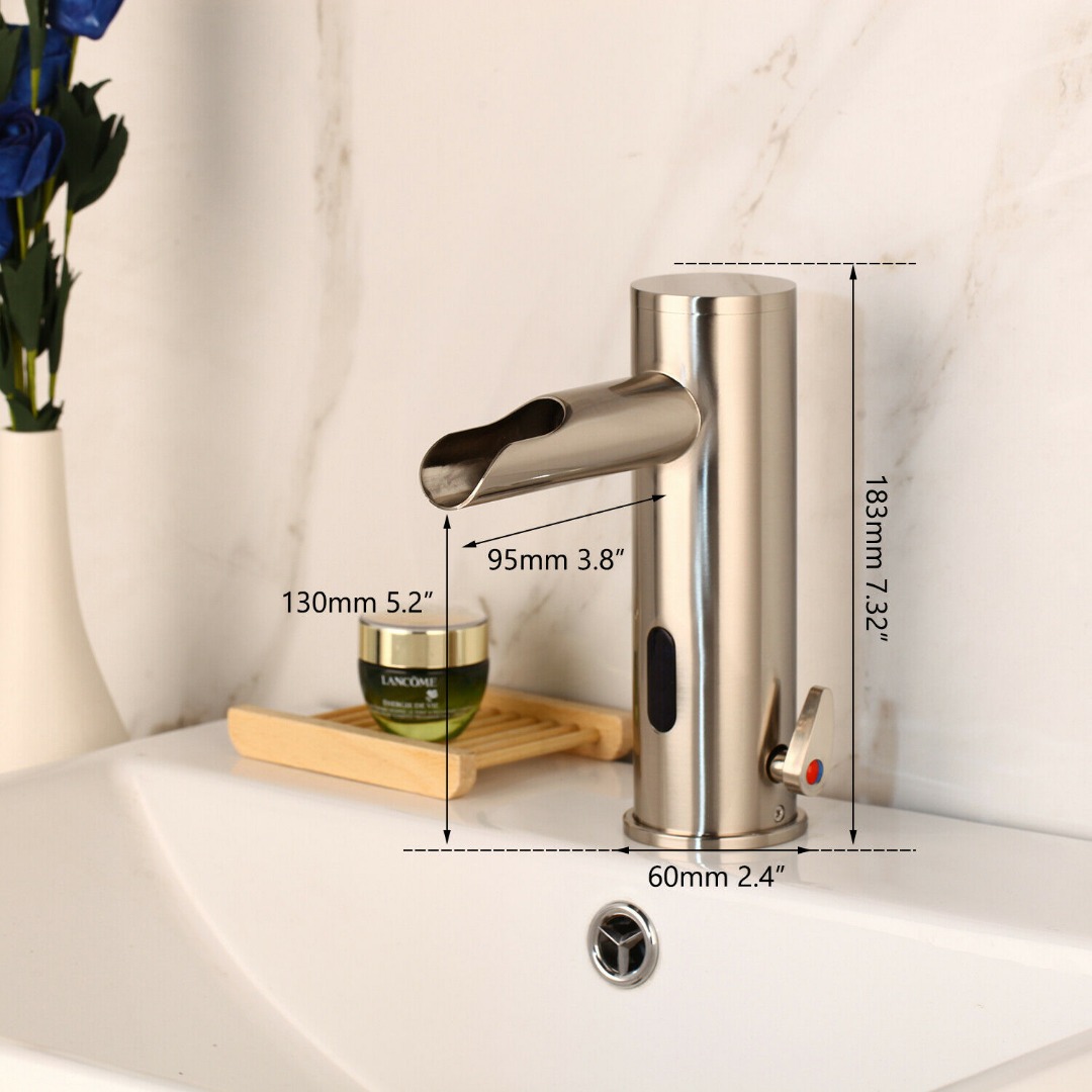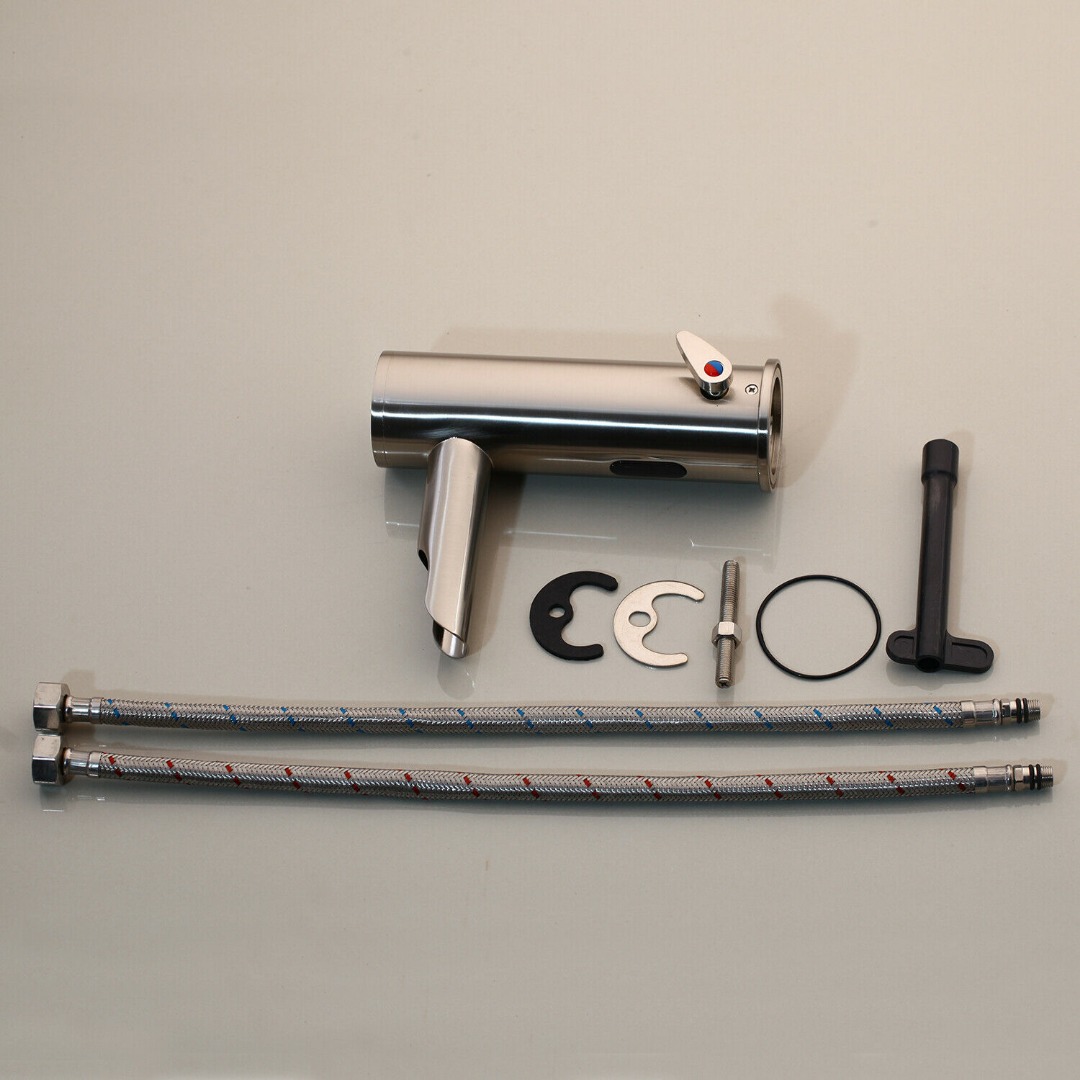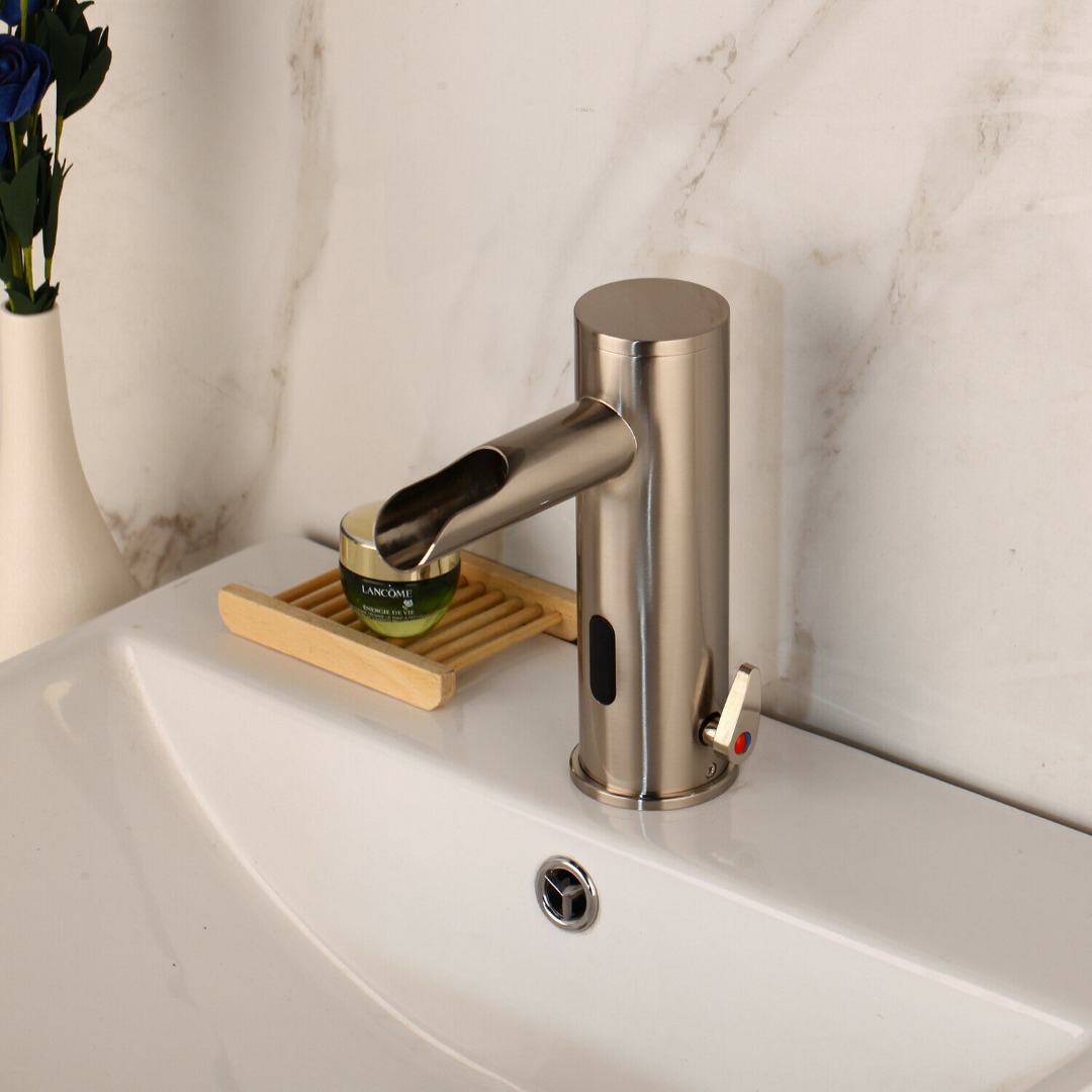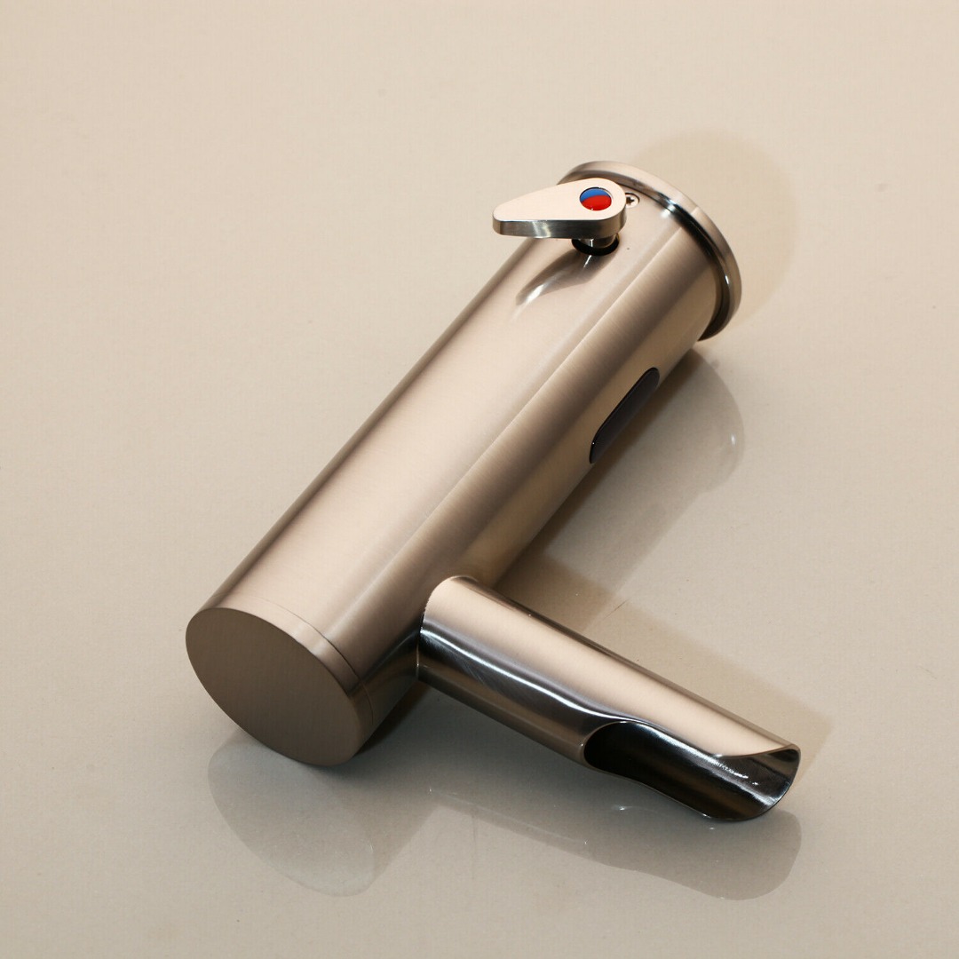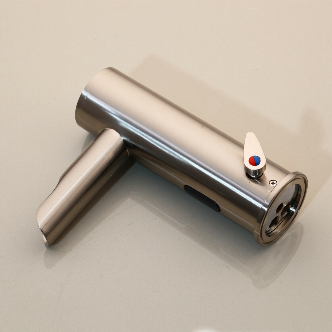Nikkel geborstelde sensorkraan met een half open uitloop voor een sensationele werking.