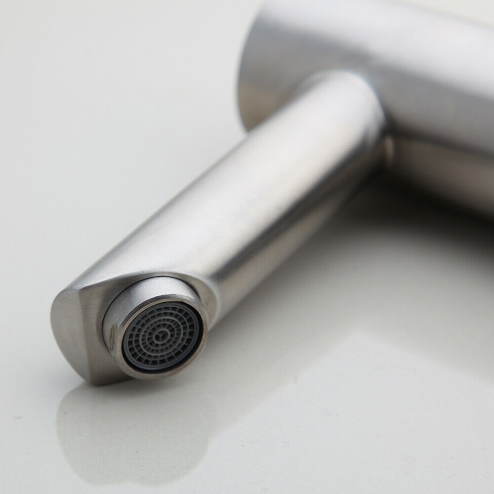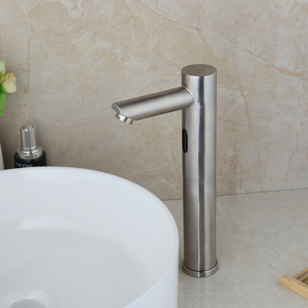 Mooie hoge sensorkraan met een geborosteld nikkel uiterlijk.