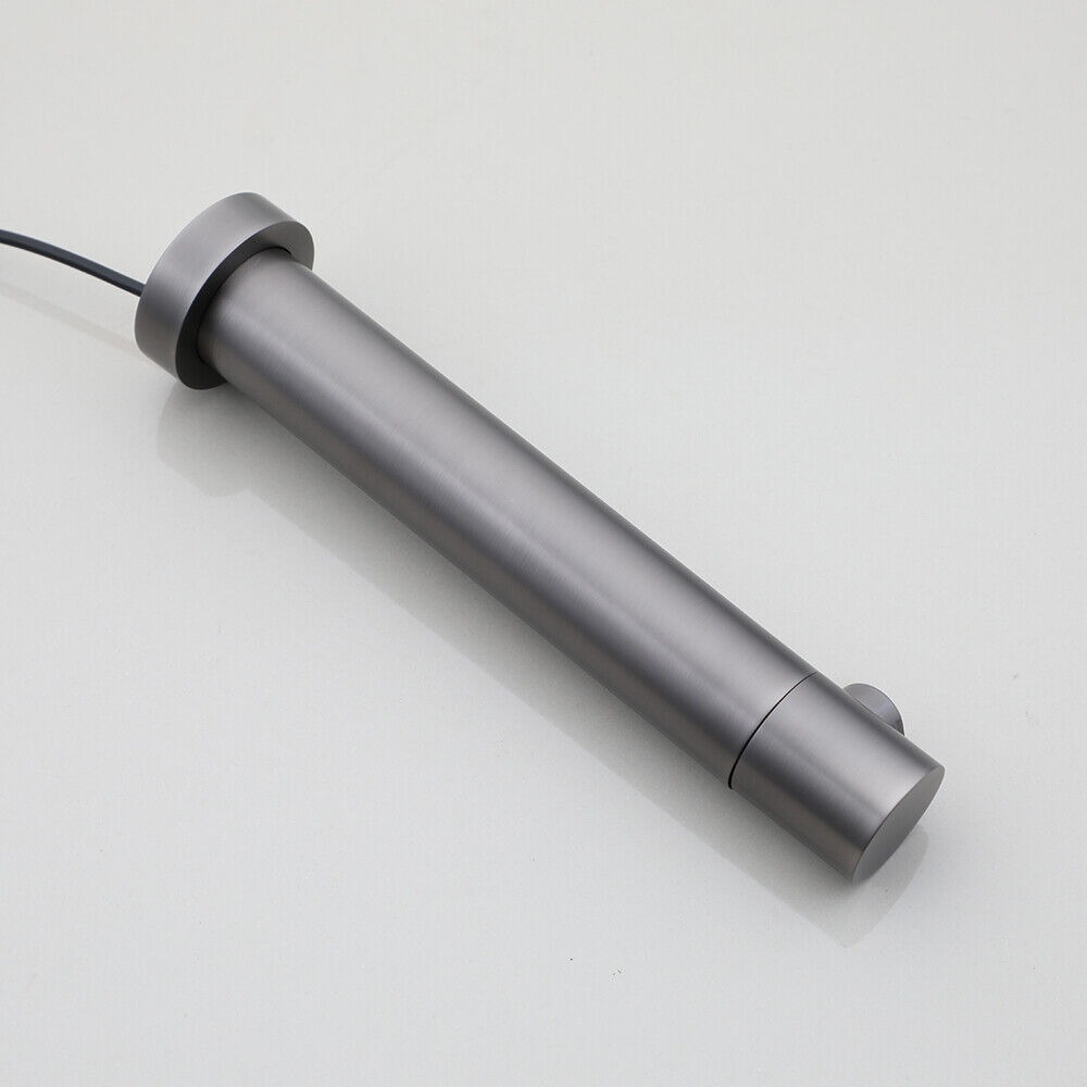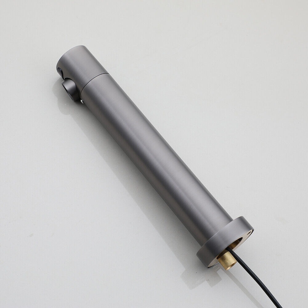 De Baltic gun metal sensorkraan wordt geleverd met geïntegreerde muurplaat.