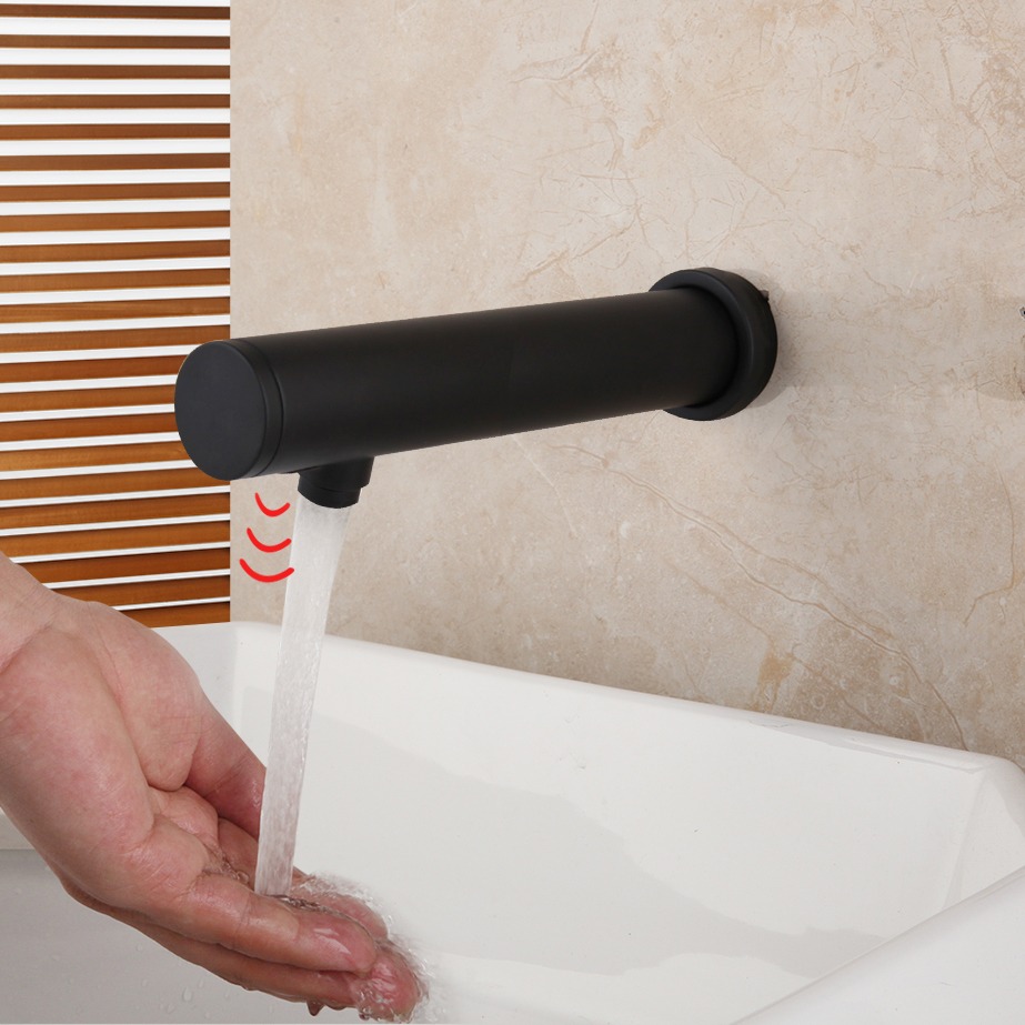 Stange sensorkraan muurkaan zwart