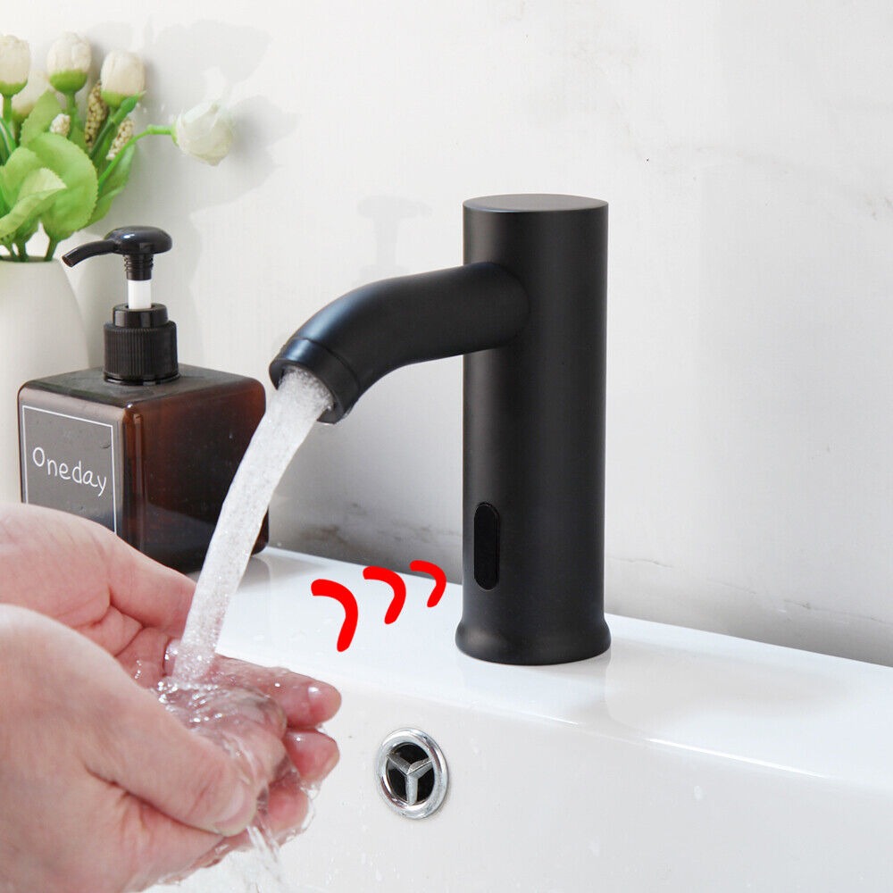 De zwarte sensorkraan heeft de warmte regelaar welke u weg werkt onder uw werkblad.